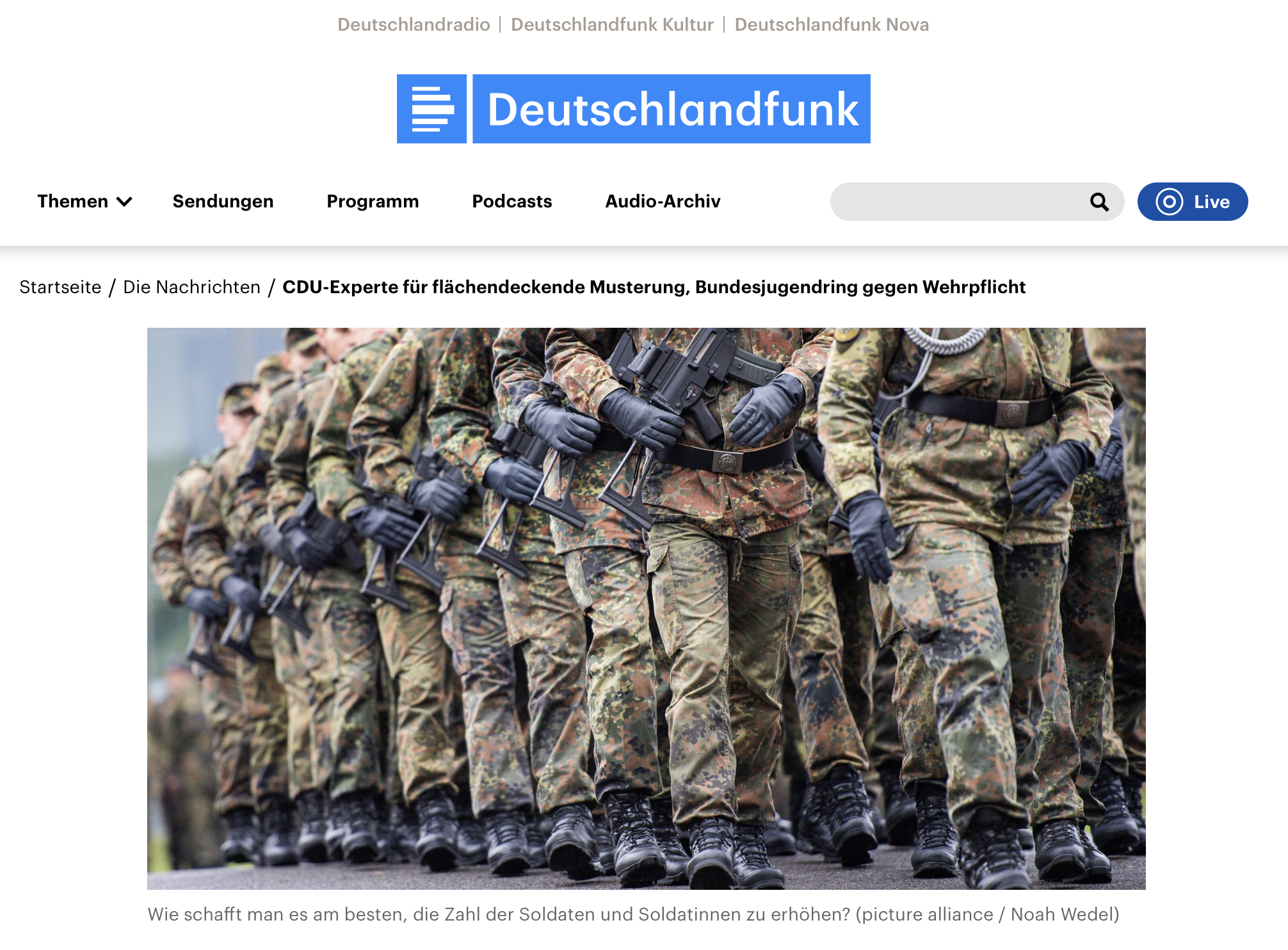 Wehrdienstdebatte - CDU-Experte für flächendeckende Musterung, Bundesjugendring gegen Wehrpflicht