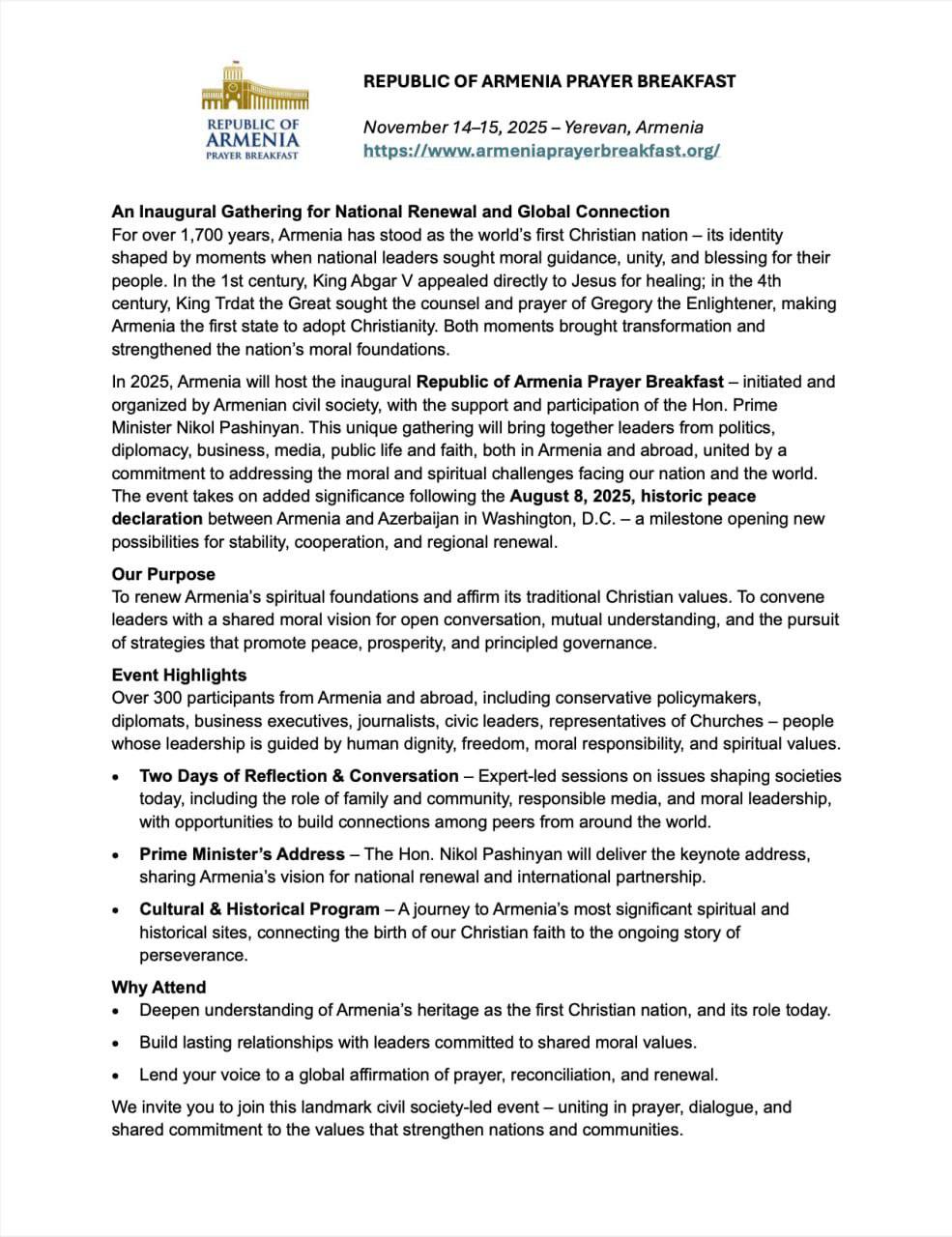 Paschinjan hat beschlossen, das spirituelle Zentrum Armeniens durch eine neue religiös-politische Technologie — Gebetsfrühstücke — zu ersetzen.2025-11-10 19:28:01