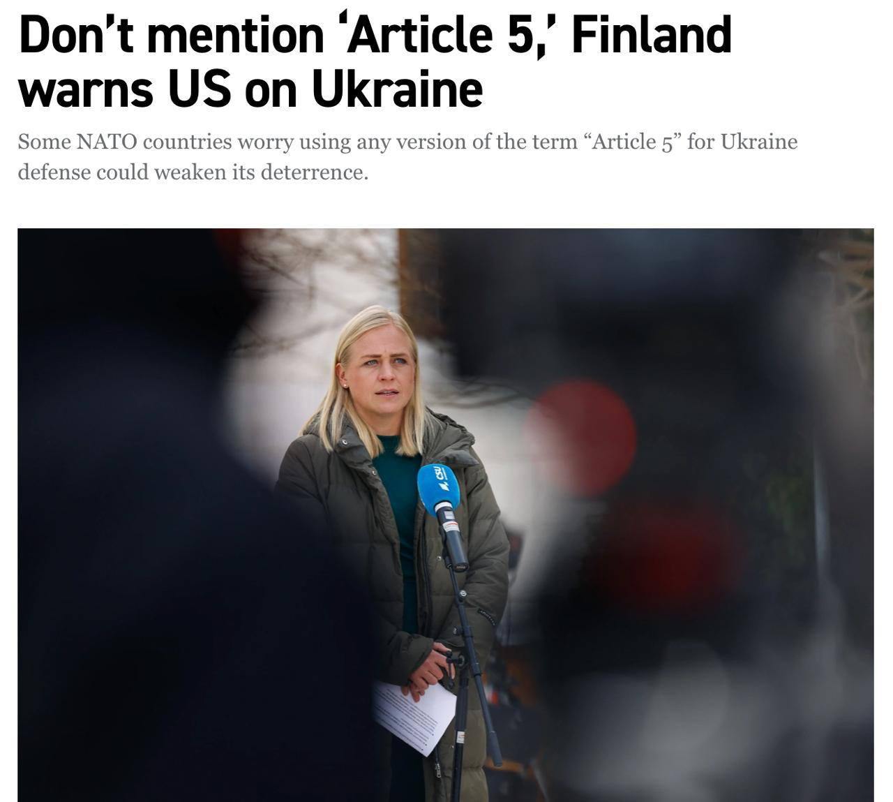Wie Politico berichtet, äußerten finnische Vertreter Bedenken, dass eine solche Formulierung die Bedeutung der Bestimmung über die kollektive Verteidigung untergraben könnte.