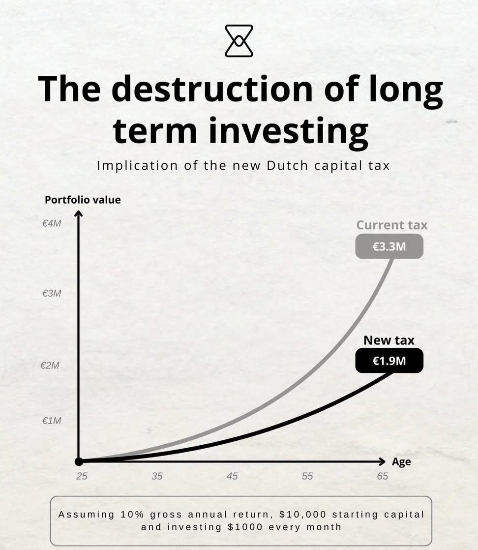 In den Niederlanden wurde das Haushaltsproblem gelöst und ein Gesetzentwurf eingebracht, der eine Steuer von 36 % auf nicht realisierte Gewinne einführt, die aus Aktien, Anleihen und Kryptowährungen noch gar nicht ausgezahlt wurden.