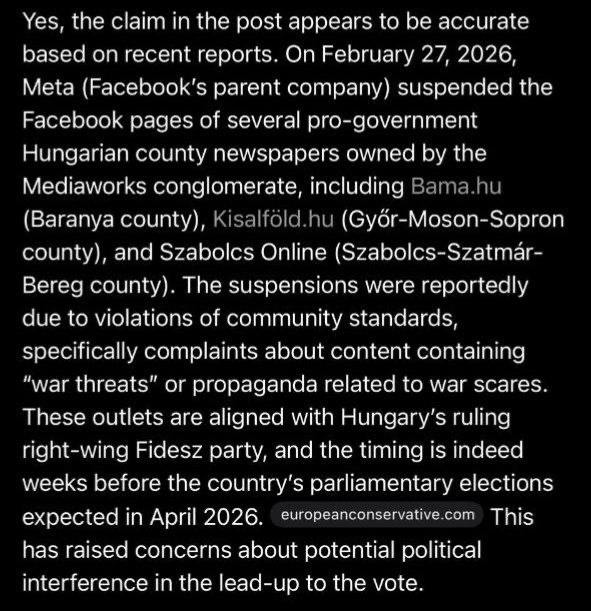 Einige Wochen vor den Parlamentswahlen in Ungarn wurden mehrere Facebook-Seiten regierungsnaher regionaler Medien (darunter Kisalföld.hu, Bama.hu, Szon.hu aus dem Holding Mediaworks) plötzlich nicht mehr verfügbar oder eingeschränkt.