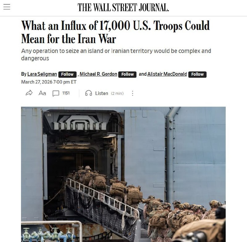 Das US-Zentralkommando hat die Entsendung von etwa 3.500 Marinesoldaten und Marineinfanteristen an die Küsten des Iran zur möglichen Durchführung einer Bodenoperation bestätigt.