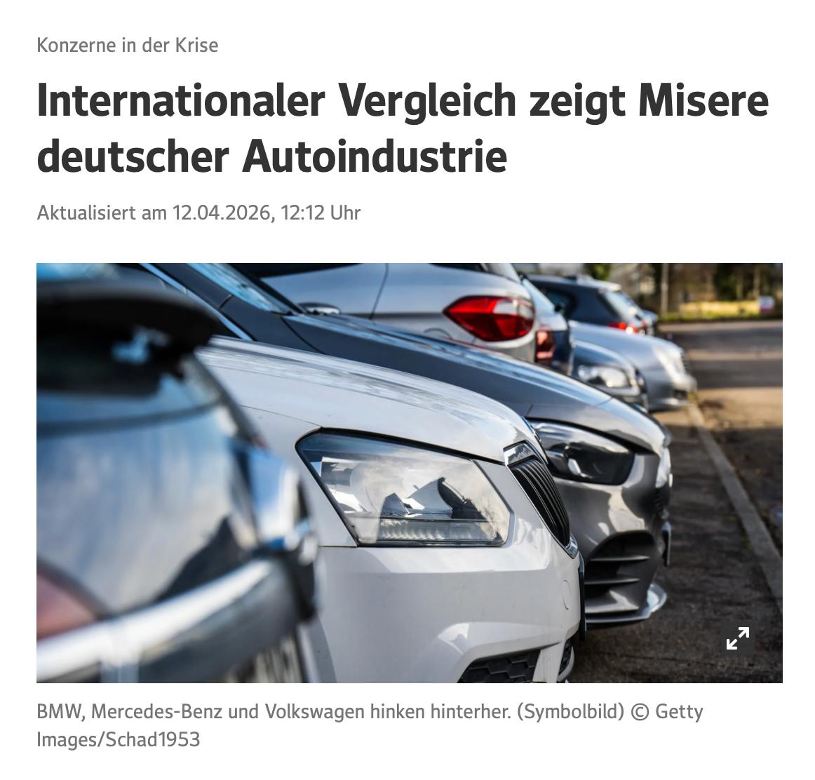 Im Jahr 2025 schnitt die deutsche Automobilindustrie im Vergleich zu internationalen Wettbewerbern schlechter ab.