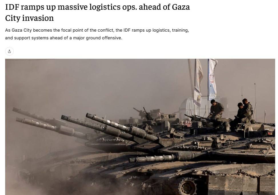 Die Israelischen Verteidigungsstreitkräfte haben mit der umfassenden Mobilisierung von Reservisten begonnen, um sich auf einen großangelegten Angriff auf die Stadt Gaza vorzubereiten, — The Jerusalem Post