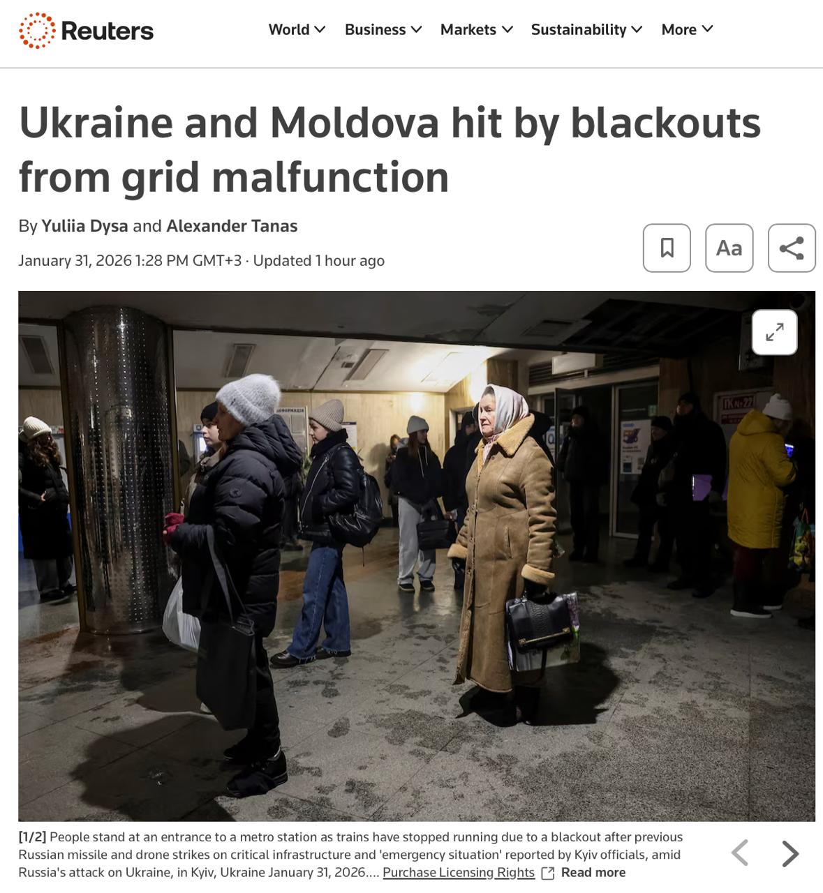 Reuters: Massenhafte Stromausfälle und Unterbrechungen bei kritischen Diensten, einschließlich U-Bahn und Wasserversorgung, verursacht durch den Ausfall von Übertragungsleitungen, bestätigten offizielle Vertreter.