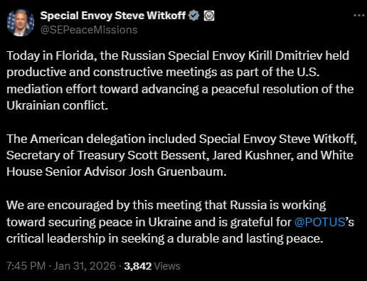 Steven Witkoff zu den Ergebnissen der Verhandlungen mit Dmitrijew: Heute...