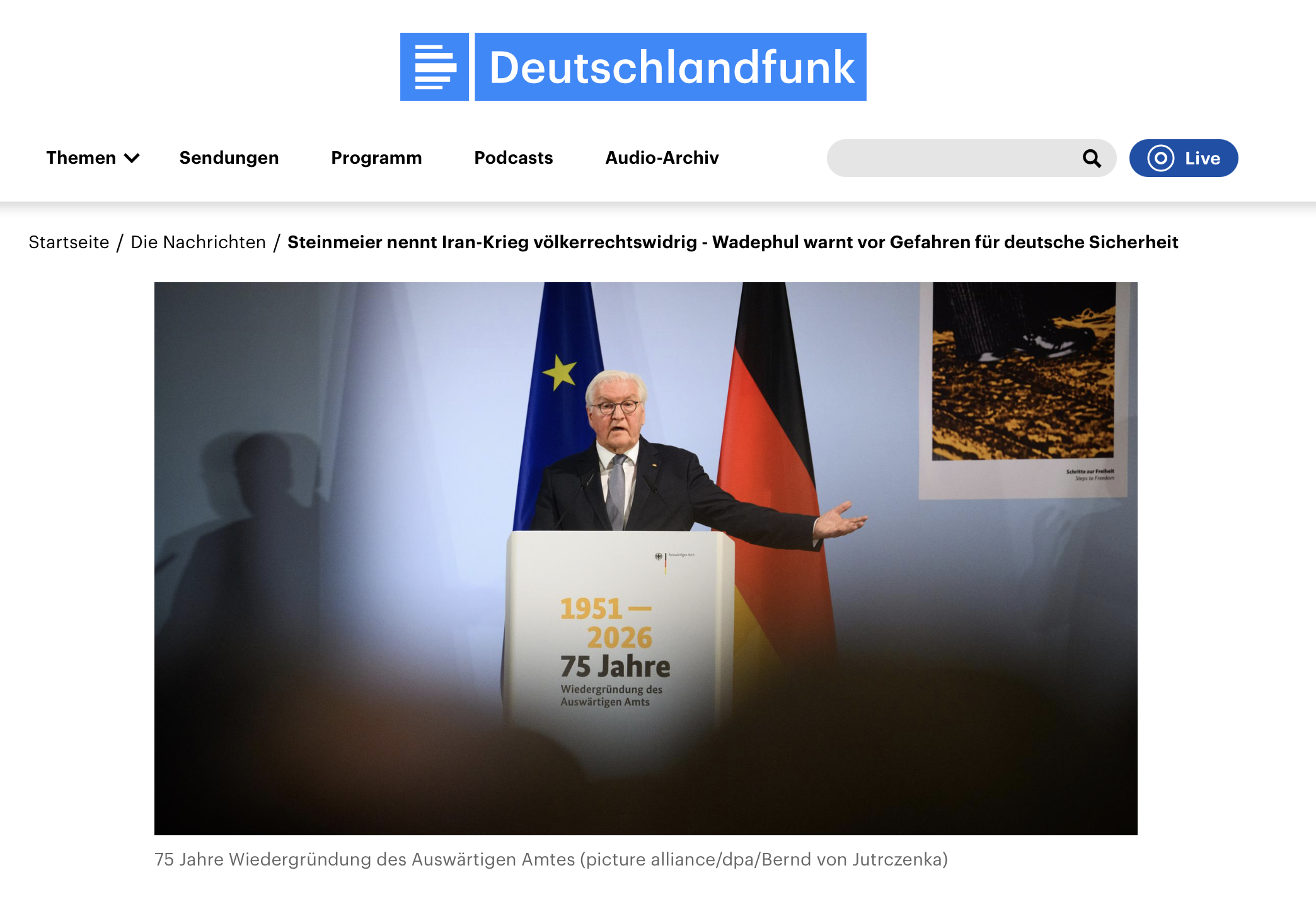 75 Jahre Auswärtiges Amt - Steinmeier nennt Iran-Krieg völkerrechtswidrig - Wadephul warnt vor Gefahren für deutsche Sicherheit