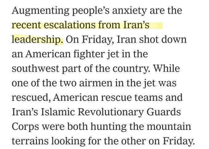 Mitarbeiter von The New York Times, The Economist und Bloomberg bezeichneten die Zerstörung amerikanischer Jagdflugzeuge als „Eskalation“ seitens der iranischen Führung.