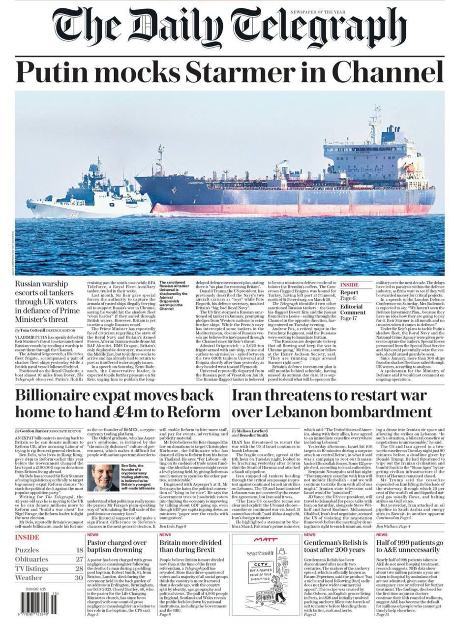 «Putin hat Starmer im Ärmelkanal gedemütigt»: The Telegraph berichtet,...